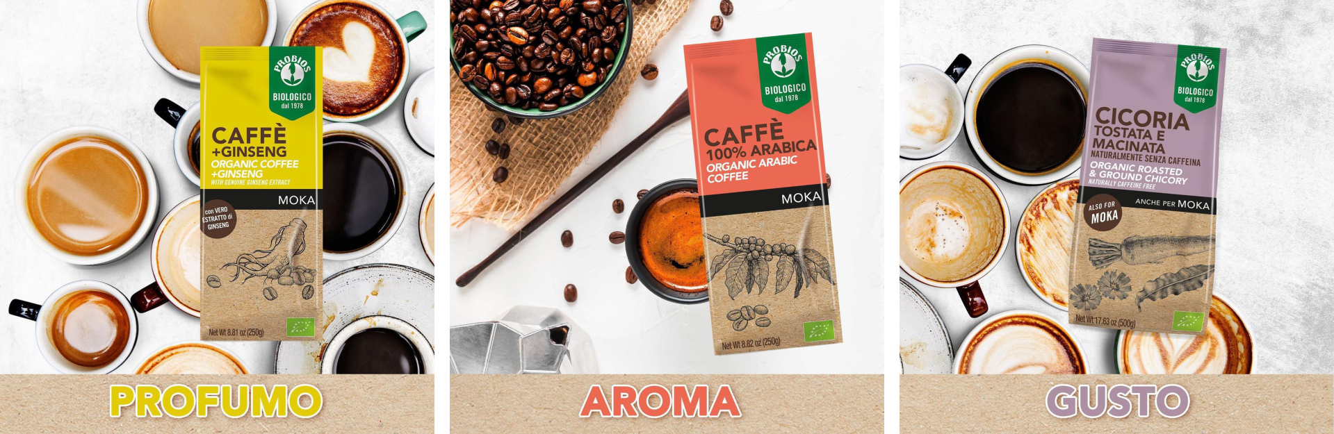 BEVCG0250 Probios Organic Coffee + Ginseng for Moka and American Filter Coffee 250gr.